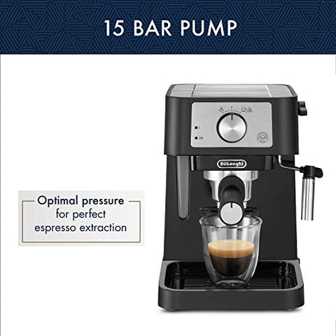 De'Longhi Stilosa Manual Espresso Machine, Latte & Cappuccino Maker, 15 Bar Pump Pressure + Milk Frother Steam Wand, Black / Stainless, EC260BK, 13.5 x 8.07 x 11.22 inches