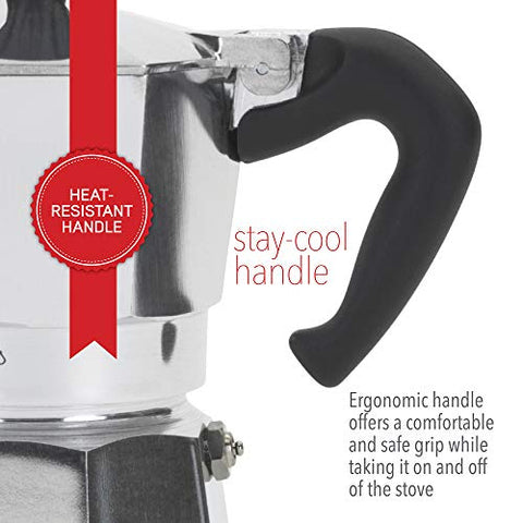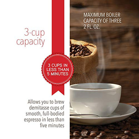 Details: Aluminum, stovetop espresso maker produces 3 demitasse cups of rich, authentic Italian espresso in just 4-5 minutes.
